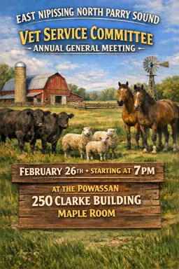Did you know the Township of Bonfield is a member of the East Nipissing North Parry Sound Veterinary Services Committee. Being part of this organization allows producers/farmers in in our Township to benefit from the Veterinary Assistance Program for large animals. If you are interested, the annual general meeting is fast approaching, reach out to Pauline Carmichael or Councillor Dan MacInnis for more information.