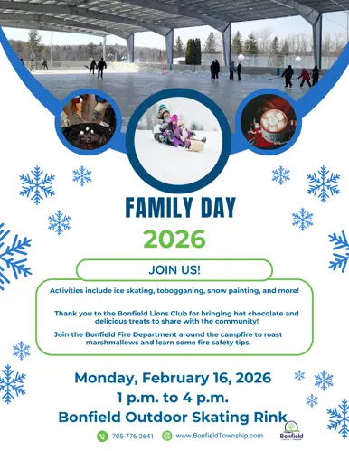 Mark your calendars! Family Day fun is coming to Bonfield on Monday, February 16, 2026 from 1:00 p.m. to 4:00 p.m.