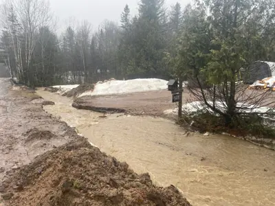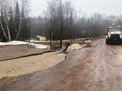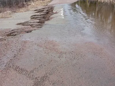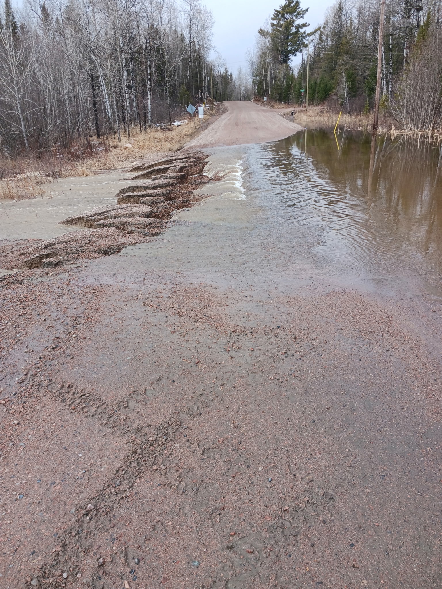 There are numerous driveways washed out, and roadways may be deteriorated as the water continues to flow. Please drive with caution.